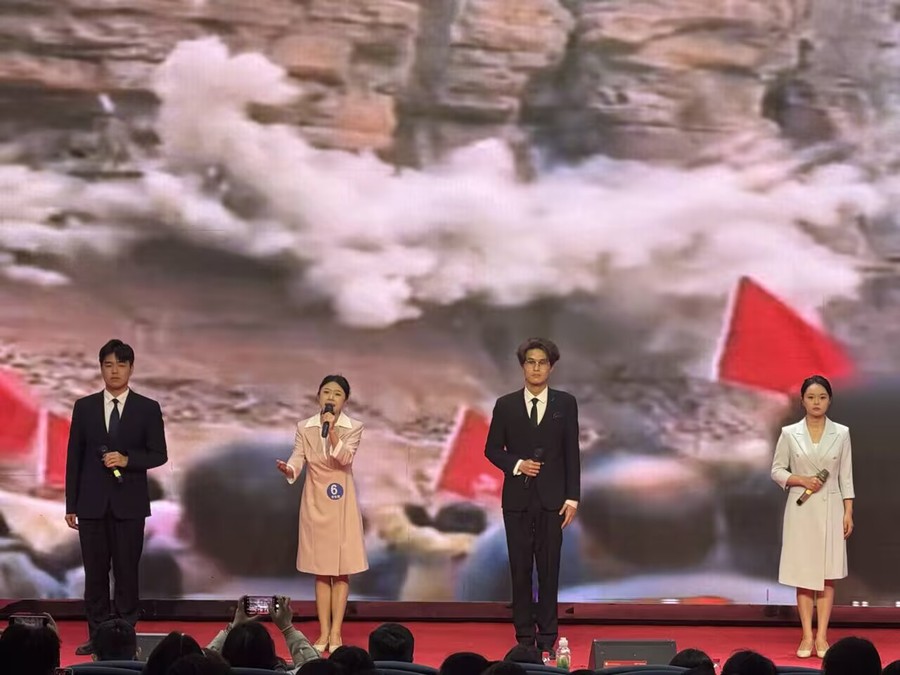 大赛自4月份启动,共有7组教师作品和15组学生作品进入决赛。比赛现场气氛热烈,选手们用声音叩响经典之门,以饱满的精神状态和良好的朗诵艺术,将经典篇章演绎得淋漓尽致。教师选手以深厚的朗诵功底打动全场。洪泽湖产业学院教师们深情演绎《读中国》,带领观众穿越五千年文明长河;智能制造学院教师诵读的《红铁》再现革命先烈的铮铮铁骨,令人热血沸腾;酒店学院教师合作的《青春中国》则用激昂的语调描绘新时代的蓬勃气象;药学院教师通过《家风颂》的诵读,传递出中华传统美德的深远力量。学生选手的表现同样精彩纷呈。国际教育学院留学生以慷慨激昂的《满江红》开场;《我的南方和北方》在护理学院四位同学的诵读中,展现了祖国山河的壮美与乡愁;药学院两位同学诵读的《相机上的红丝绳》以真挚的演绎赋予文字鲜活的生命力,展现了战争年代的血脉传承与新时代的精神守望;酒店学院四位同学诵读的《红旗渠》再现了“人工天河”的奋斗史诗。
