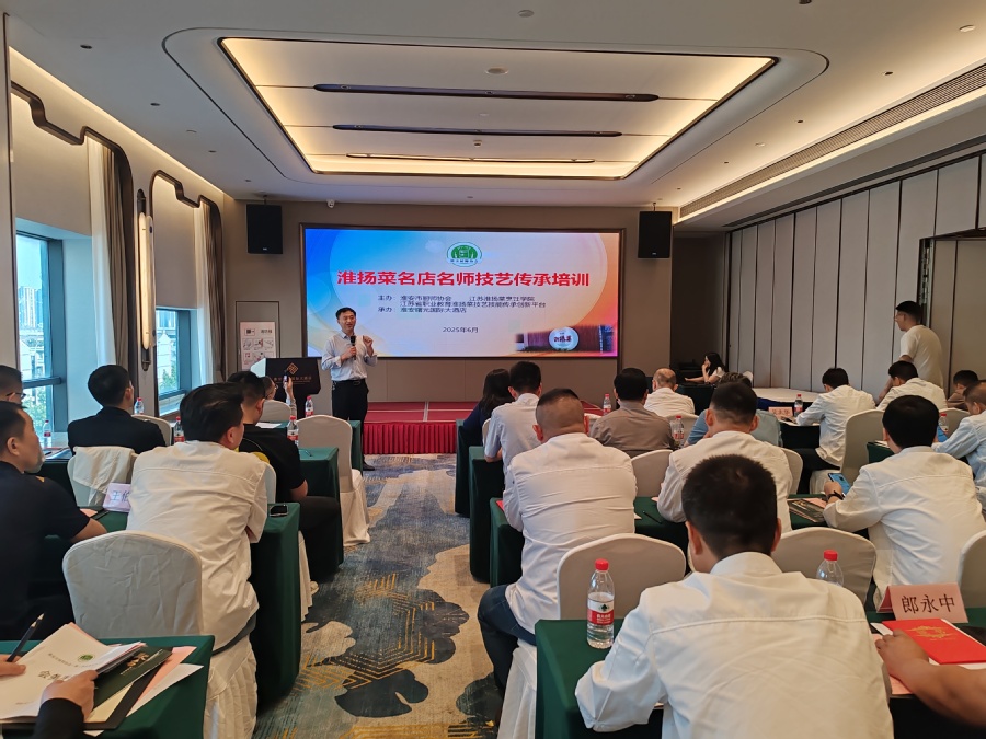 为提升淮扬菜行业人才技能水平,推动餐饮业高质量发展,江苏淮安淮扬菜烹饪学院联合淮安市厨师协会在换届选举期间,对120余名会员代表开展了专题培训,通过法律风险防控讲座、食品安全责任保险解读及烹饪技艺现场演示,为学员带来了一场理论与实践并重的行业盛会。