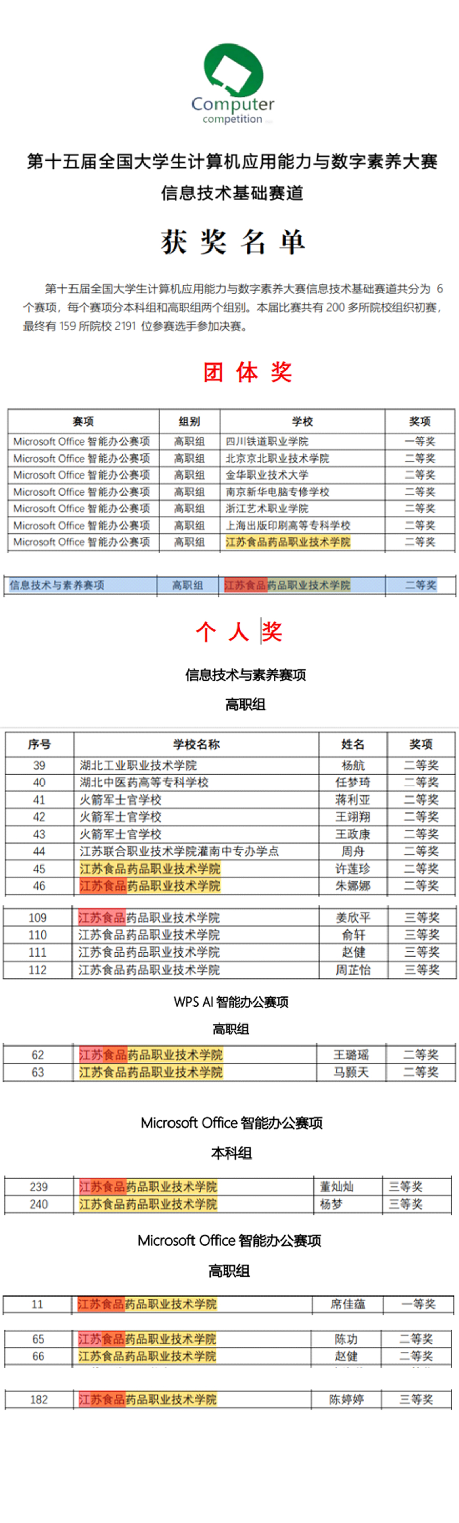 5月24日至25日,由全国高等学校计算机教育研究会等四家单位联合主办的第十五届全国大学生计算机应用能力与数字素养大赛在线上圆满落幕。本届大赛共设六大竞赛赛道,吸引了来自全国200余所院校的2191名选手激烈角逐。澳洲10手机版选手们凭借扎实的专业素养,在本科组与高职组的多个赛项中脱颖而出,荣获团体二等奖2项、个人一等奖1项、二等奖6项、三等奖7项。