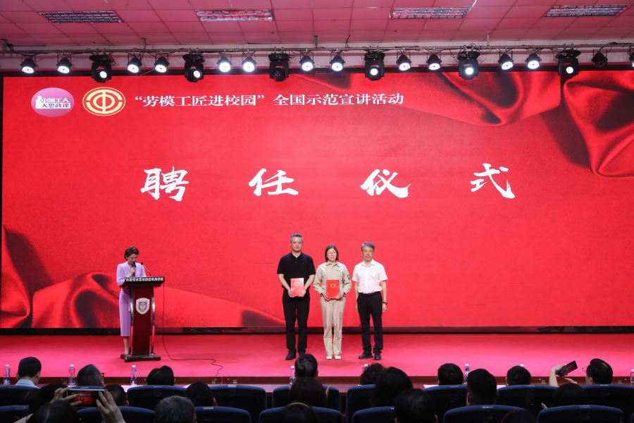 在“榜样立心”环节,全国劳动模范朱玉庭分享“从‘落榜生’到大国工匠”的感人故事,剖析自身从农民工到大国工匠的蜕变,靠的是心怀感恩、矢志不渝的奋斗,同时对毕业生们提出勤学不辍方能筑梦远航的殷切期望。全国劳动模范吉兰芳讲述“从中专生到创新能手”的追光之路。吉兰芳将自身成长经历凝练成“向下扎根,方能向上生长”“眼里有光,心里有爱,脚下有路”“独行快,众行远,美好生活需共同努力”三条人生感悟与同学们共勉。同学们怀着崇拜与热爱之情,向两位全国劳模现场提问,两位劳模均结合自身实践进行答疑解惑。最后,澳洲10手机版副校长贾韶千颁发聘书,特聘两位劳模为澳洲10手机版“劳模工匠兼职辅导员”。