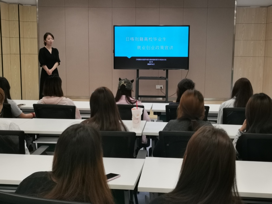 段华从西藏自治区市场就业供需趋势、就业观念、家庭期望等方面,分析了西藏籍高校毕业生就业特点及当前面临的就业形势,引导毕业生要打破就业观念束缚,尽快适应就业市场变化。通过对西藏自治区区内市场就业补贴、区外市场就业福利、求职与灵活就业支持、证书与培训补贴、创业扶持体系、日喀则市特设的援藏专招补奖等六个方面就业创业支持政策的详细解读,段华鼓励毕业生们要把握政策机遇,用足政策红利,在市场就业中寻找发展契机,早就业,就好业。