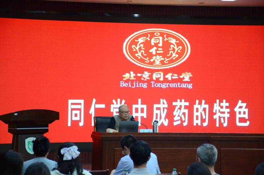 孟可老师聚焦学院专业特色,围绕北京同仁堂企业发展历程与中药炮制传统技艺展开深度讲解。他梳理同仁堂自创立至今的辉煌脉络,阐释其坚守皇家御药传统、秉承同修仁德,济世养生使命的核心理念,讲述“炮制虽繁必不敢省人工,品味虽贵必不敢减物力”的古训传承故事,同时介绍了同仁堂十大名优产品及江苏省道地药材。他强调,同仁堂以传统炮制技艺为根基,在现代制药浪潮中坚守“以质为命”理念,正是这种对品质的执着,使其百年传承中始终保持卓越疗效,为患者提供可靠药品。他寄语在场学子:未来需以“以人为本、质量第一”为职业准则,夯实专业基础,主动肩负中医药文化传承创新使命,以所学所长推动中医药文化走向世界,为学院专业发展与行业进步贡献力量。