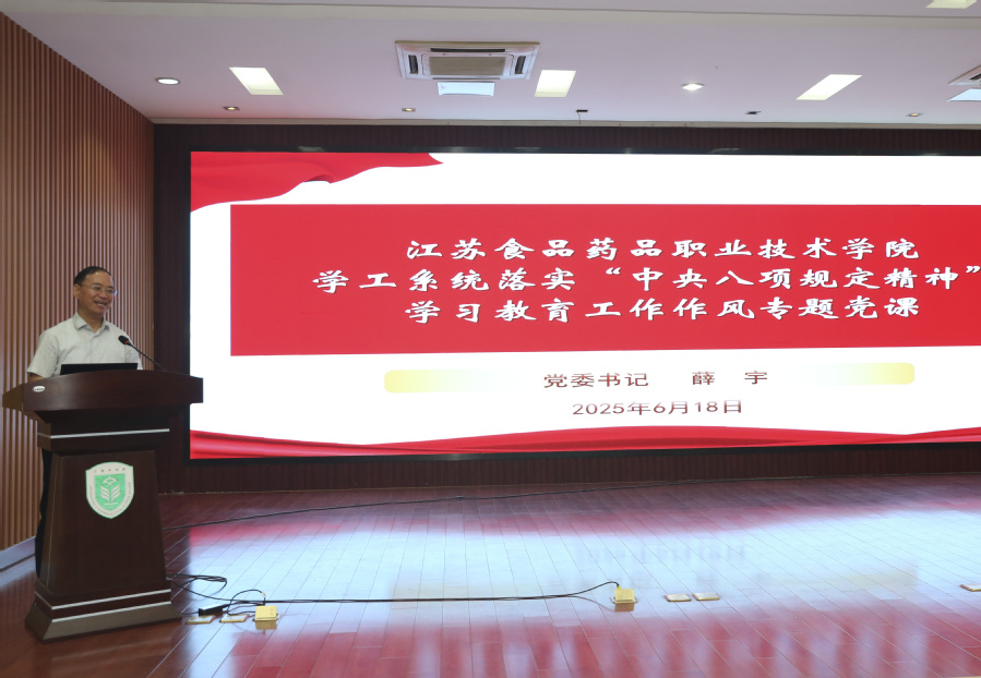 薛宇讲授学工系统深入贯彻中央八项规定精神学习教育暨工作作风建设专题党课,他紧扣习近平总书记关于作风建设的重要论述和党的二十大精神,结合学工工作实际,从政治高度阐述了作风建设的重要性。薛宇强调,学工队伍作为落实立德树人根本任务的主力军,必须始终以中央八项规定精神为行动准则,坚决破除形式主义、官僚主义,以务实作风护航学生成长成才。他提出五个坚持要求,坚持服务学生,解决急难愁盼;坚持成果导向,提升育人实效;坚持立行立改,建立问题销号机制;坚持创新驱动,打造学工品牌;坚持科学考核,激励担当作为。