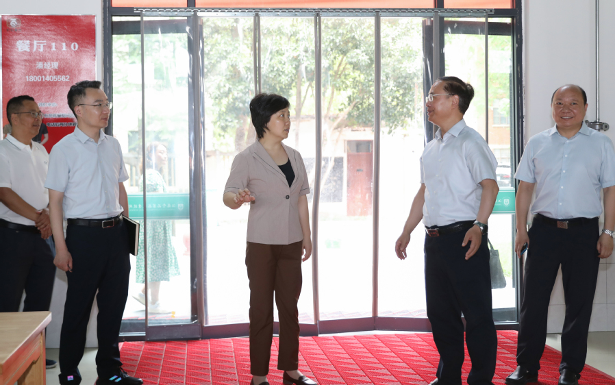 会前,沈晓红书记一行实地参观了洪泽湖产业学院学生餐厅、文体中心、教学楼、图书馆等学生学习和生活场所,对校园呈现出的纵深感、文艺范、国风潮赞不绝口。