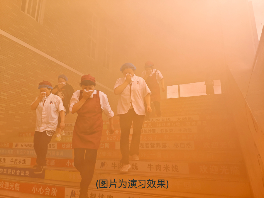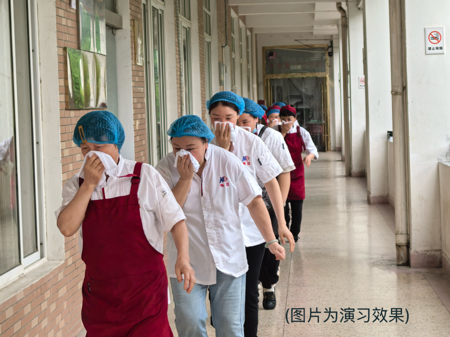 本次演练以餐厅一楼快餐厨房燃气泄漏为模拟场景。模拟险情触发后,餐厅工作人员第一时间关闭燃气阀门及电源,启动应急报警装置;同时有序组织在场师生员工用湿毛巾掩口鼻,沿安全通道躬身快速疏散,数分钟内全体人员安全疏散完毕。在疏散过程中,部分员工与安保人员还现场进行了灭火器实操演练。后勤、保卫部门火速联动燃气抢修、消防及急救力量。新奥燃气队员快速查漏修复管道,消防与医疗同步高效响应。