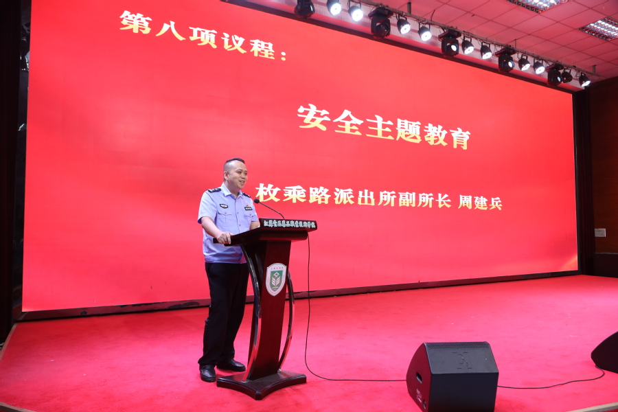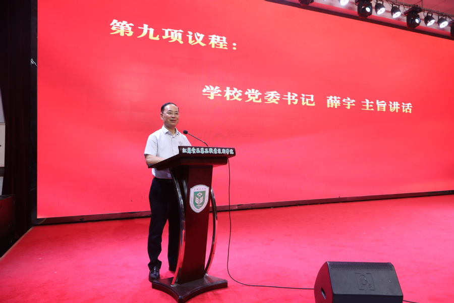 最后,薛宇书记作主旨讲话。他指出,今天的活动令人深受感动,主要体现在三个方面,一是周所长的精彩报告让人感动,报告通过真实案件警示、安全规范要求、大学城治安环境深度剖析三个维度,展现了公安干警“守护不打烊”的奉献精神,为我们学校高质量发展构建起安全屏障;二是成立的两支服务队,成为平安校园建设的亮丽风景,感动于师生员工的广泛参与——从一线教师到中层干部,尤其党员同志们以主人翁精神,为学校的平安校园建设发挥党性力量、先锋力量、标杆力量;三是青年学生安全志愿者的优秀表现,让人感动,这支以退伍军人为主的队伍,是我们学生中安全保卫意识强,服务能力优秀,作风过硬的骨干分子、先进分子。