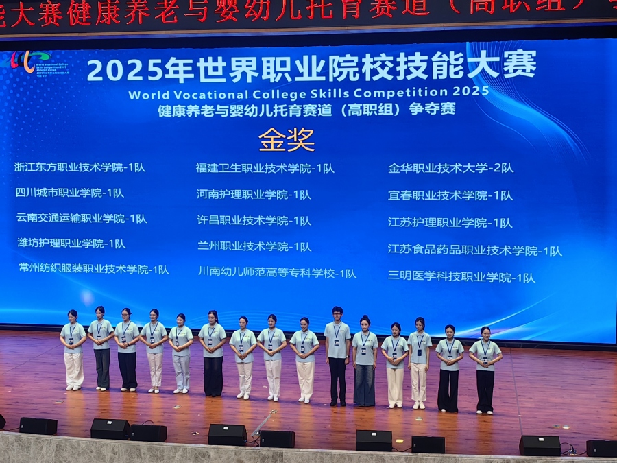 2025年世界职业院校技能大赛健康养老与婴幼儿托育赛道(高职组)争夺赛于8月28日至9月2日在云南省安宁市举行。本届大赛以“技炫青春 能创未来”为主题,来自全国30余省市的155支参赛队伍同场竞技、共展风采。澳洲10手机版参赛队伍凭借过硬实力突破重围,最终斩获金奖。