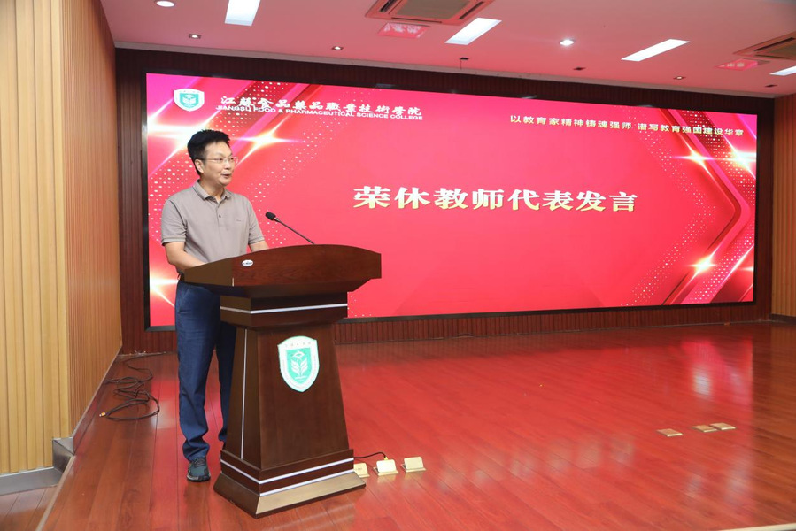 仪式上,安进副书记宣读了2025年以来退休教职工和从教30年教师名单。校领导为荣休教职工和从教30年教师赠花。荣休教职工代表王善飞、从教30年教师代表何艳、青年教师代表陈天驰、学生代表左佳琦分别结合自身实际发言。