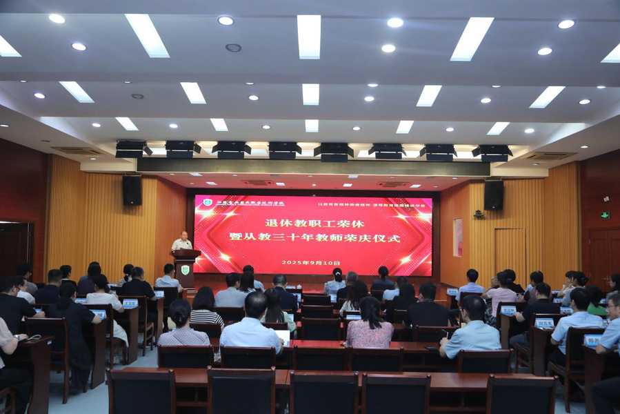 荣休教职工、从教30年教师、人事处、工会、离退休工作处、相关院部、职能部门负责同志、青年教师代表、学生代表等参加仪式。