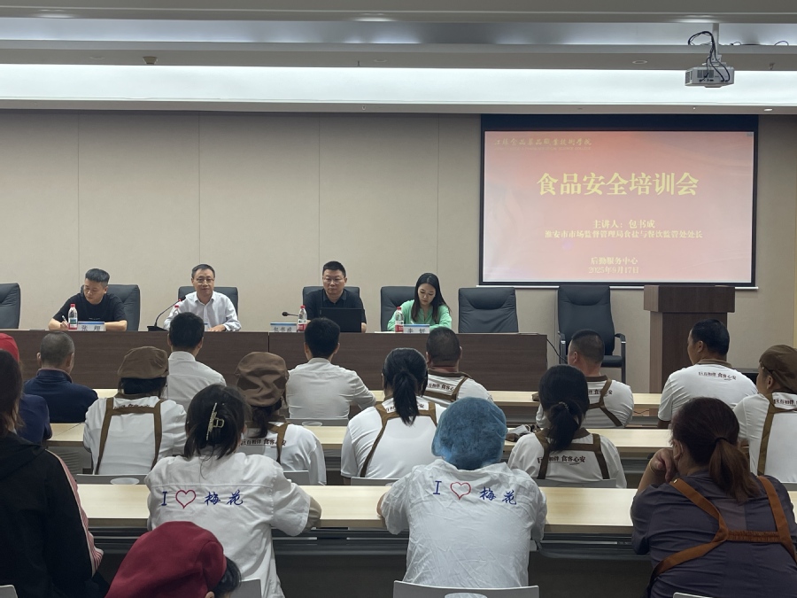 为持续强化校园食品安全管理,提升餐饮服务队伍的专业素养与责任意识,切实保障师生饮食安全,9月17日,澳洲10手机版后勤服务中心特邀淮安市市场监督管理局食盐与餐饮监管处处长包书成来校,开展了一场内容详实、针对性强的食品安全专题培训。后勤相关负责人及各餐厅全体工作人员参加,实现了校内餐饮服务网点全覆盖。