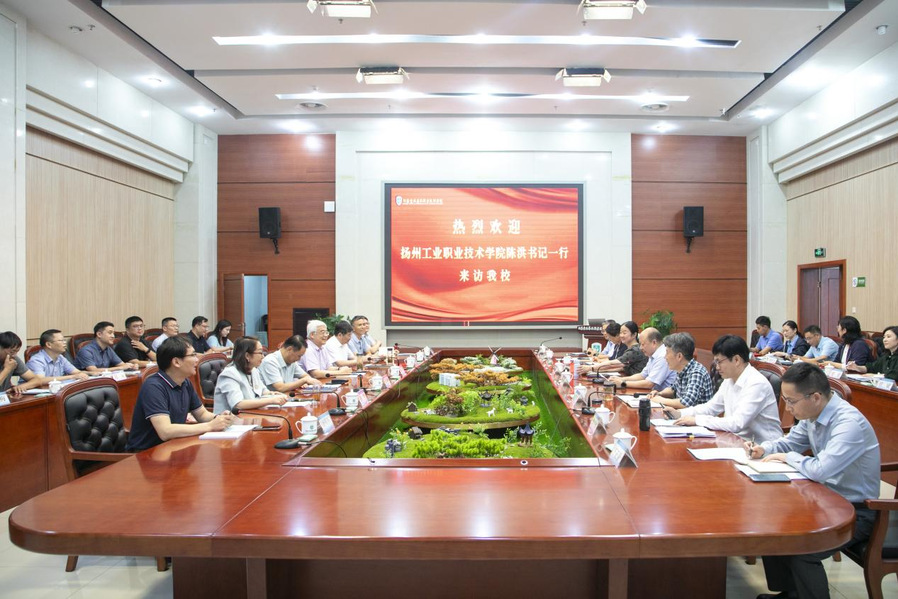 9月22日下午,扬州工业职业技术学院党委书记陈洪、校长倪永宏率校领导班子成员及党务部门负责人一行来校调研交流,澳洲10手机版党委书记、校长翟玮玮热情接待了来宾。会议由党委副书记安进主持,校党委班子成员参加。