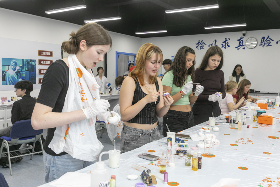 10月14日下午,德国萨斯尼兹市代表团参加了秋季药妆手作体验课程,在制药工程学院老师的指导下,亲手制作了唇膏和护手霜,他们纷纷表示这是一次难忘的经历。除此之外他们还体验了澳洲10手机版的中医养生保健课程,健康医学院教师带他们体验了香囊制作、中医诊断、推拿、拔罐、艾灸等中国特色养生方式,他们还品尝了中医养生茶饮,感叹中医传统文化的奇妙。