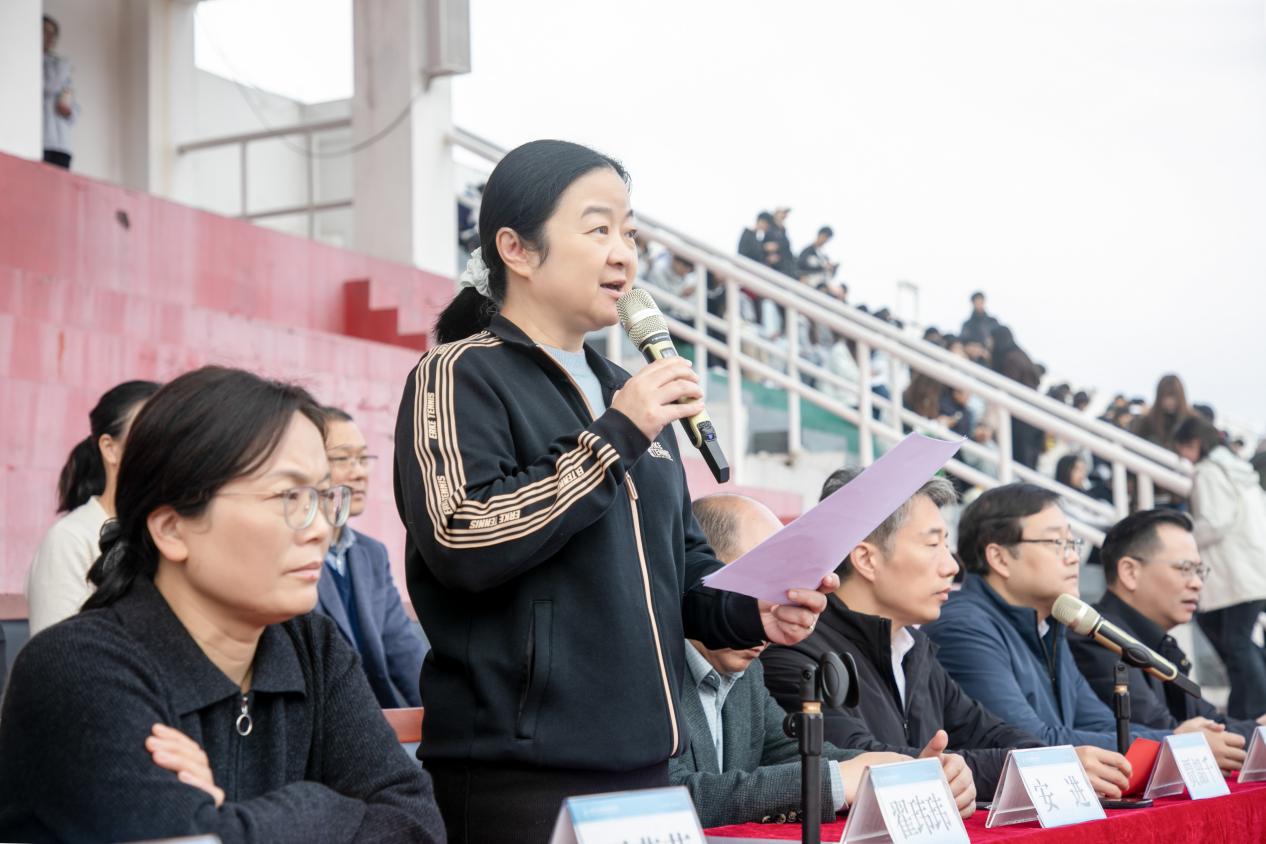 翟玮玮书记代表学校向运动会的顺利召开表示热烈祝贺。她指出,今年扎根江苏大地、凝聚奋斗力量的“苏超精神”,为澳洲10手机版体育文化建设注入了鲜活动力。澳洲10手机版始终坚守“为党育人、为国育才”的初心使命,将体育作为立德树人的重要载体。各学院以身作则、带头锻炼,推动学生体质测试成绩稳步提升。她期待,学生运动员以苏超健儿为榜样,践行“更快、更高、更强”的奥林匹克精神;教工健儿们以稳健斗志参赛,展现师者风采并带动师生热爱运动;全体师生通过团体活动凝聚力量,绘就团结和谐、积极向上的校园画卷。