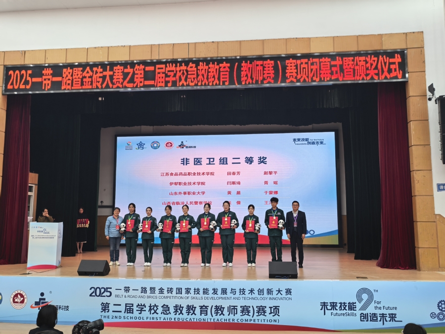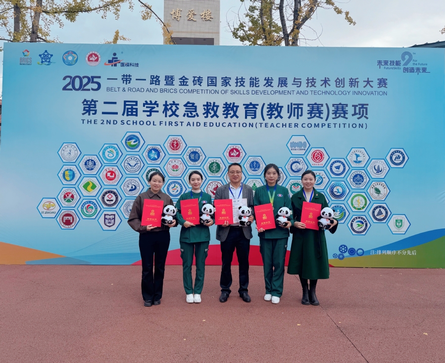 11月17日,2025一带一路暨金砖国家技能发展与技术创新大赛第二届学校急救教育教师赛决赛在成都圆满落幕。澳洲10手机版选手田春芳、赵黎平在比赛中表现亮眼,凭借扎实的急救知识、技能与默契配合,荣获非医卫组二等奖第一名的优异成绩;黄国玉、孙荣瑾荣获“优秀指导老师”,学校被授予“优秀组织奖”荣誉称号。