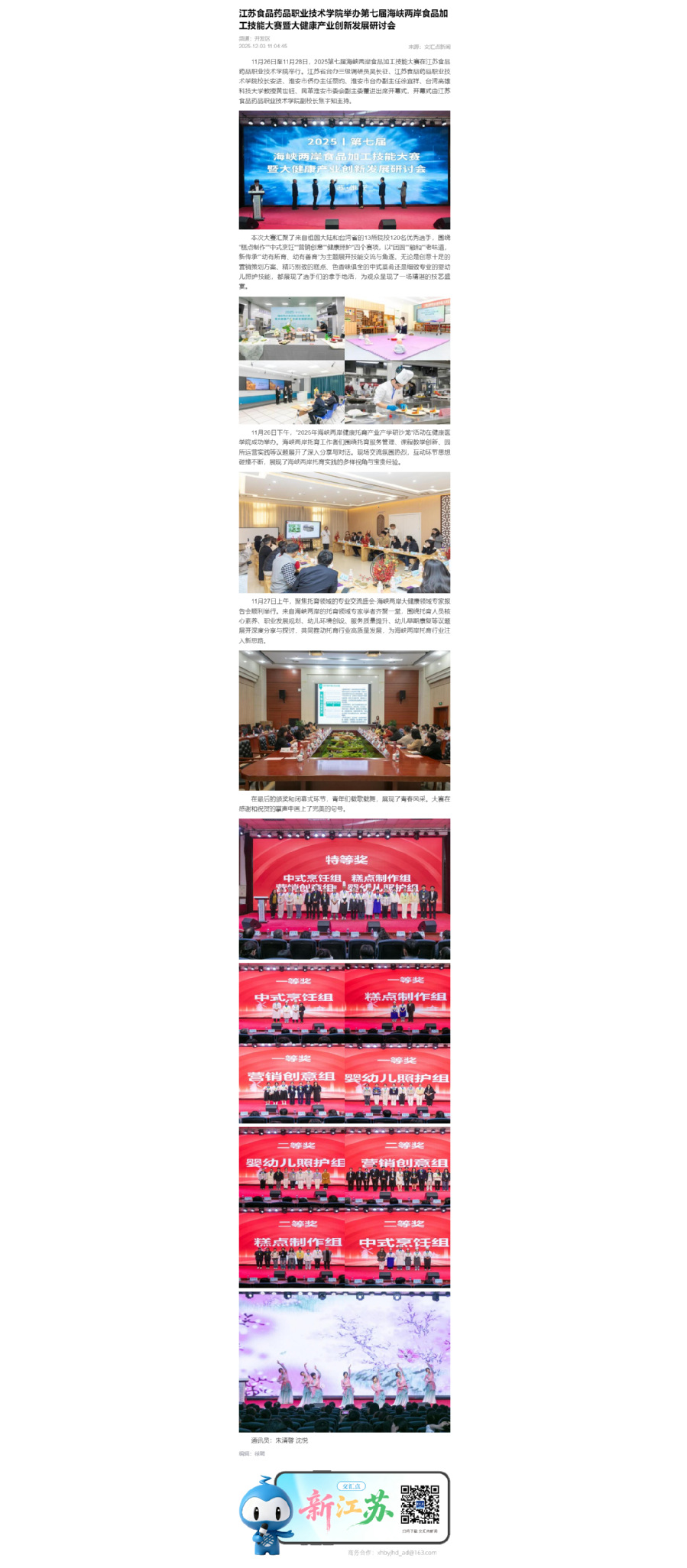 11月26日至11月28日,2025第七届海峡两岸食品加工技能大赛在澳洲10手机版举行。江苏省台办三级调研员吴长征、澳洲10手机版校长安进、淮安市侨办主任蔡昀、淮安市台办副主任徐宜祥、台湾高雄科技大学教授黄世钰、民革淮安市委会副主委董进出席开幕式,开幕式由澳洲10手机版副校长焦宇知主持。