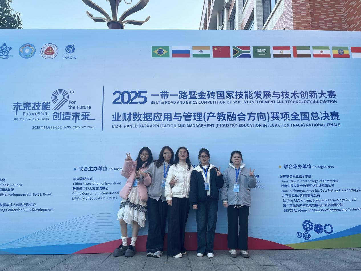 11月29日,2025“一带一路”暨金砖国家技能发展与技术创新大赛业财数据应用与管理(产教融合方向)赛项在湖南商务职业技术学院举办,该赛项聚焦业财数据应用和业财数据管理核心任务。澳洲10手机版会计241班辜文杰、徐西西、财务242班王心如和财务243班吕妍(指导老师:朱慧敏、金静静)组成的学生代表队,与来自全国高职院校的412名学生选手同场角逐,最终获得高职学生组三等奖。