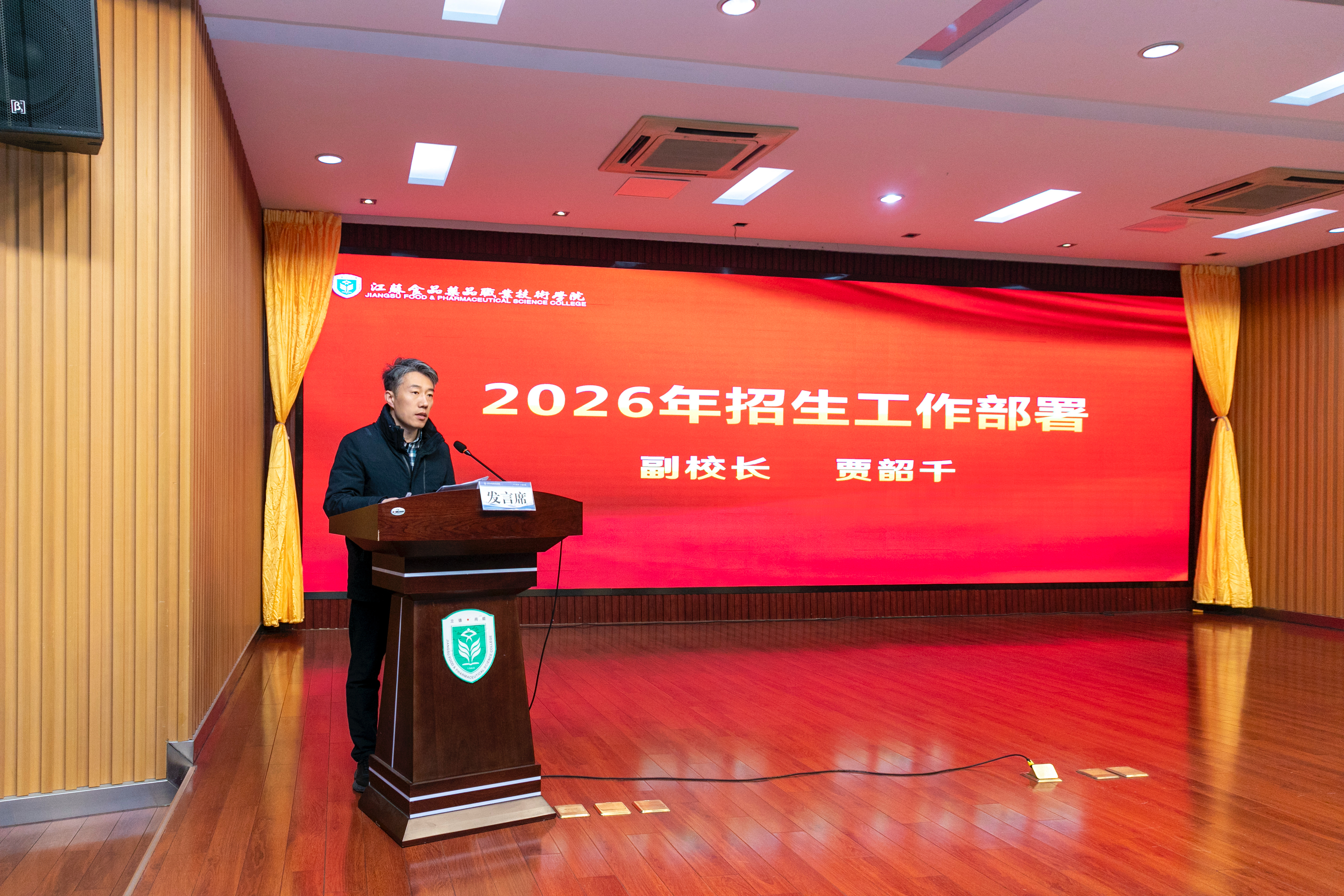 贾韶千代表学校作2026年招生工作主题部署。他指出,新一年的招生工作要聚焦“优化结构、提升质量”的核心目标,科学规划总体布局,通过深化“全员参与、全链协同”的组织体系改革,将招生工作深度融入人才培养全过程。他还对当前及未来一段时期的招生形势进行了分析研判并针对各批次各区域的招生政策提出指导意见,要求各部门、各学院科学施策、精准发力,为学校“十五五”发展规划的顺利实施奠定优质生源基础。部署结束后,贾韶千专门就招生工作纪律提出明确要求,强调必须严守政策红线、严明宣传纪律、严肃廉洁纪律,确保招生工作公平、公正、公开,维护学校声誉。