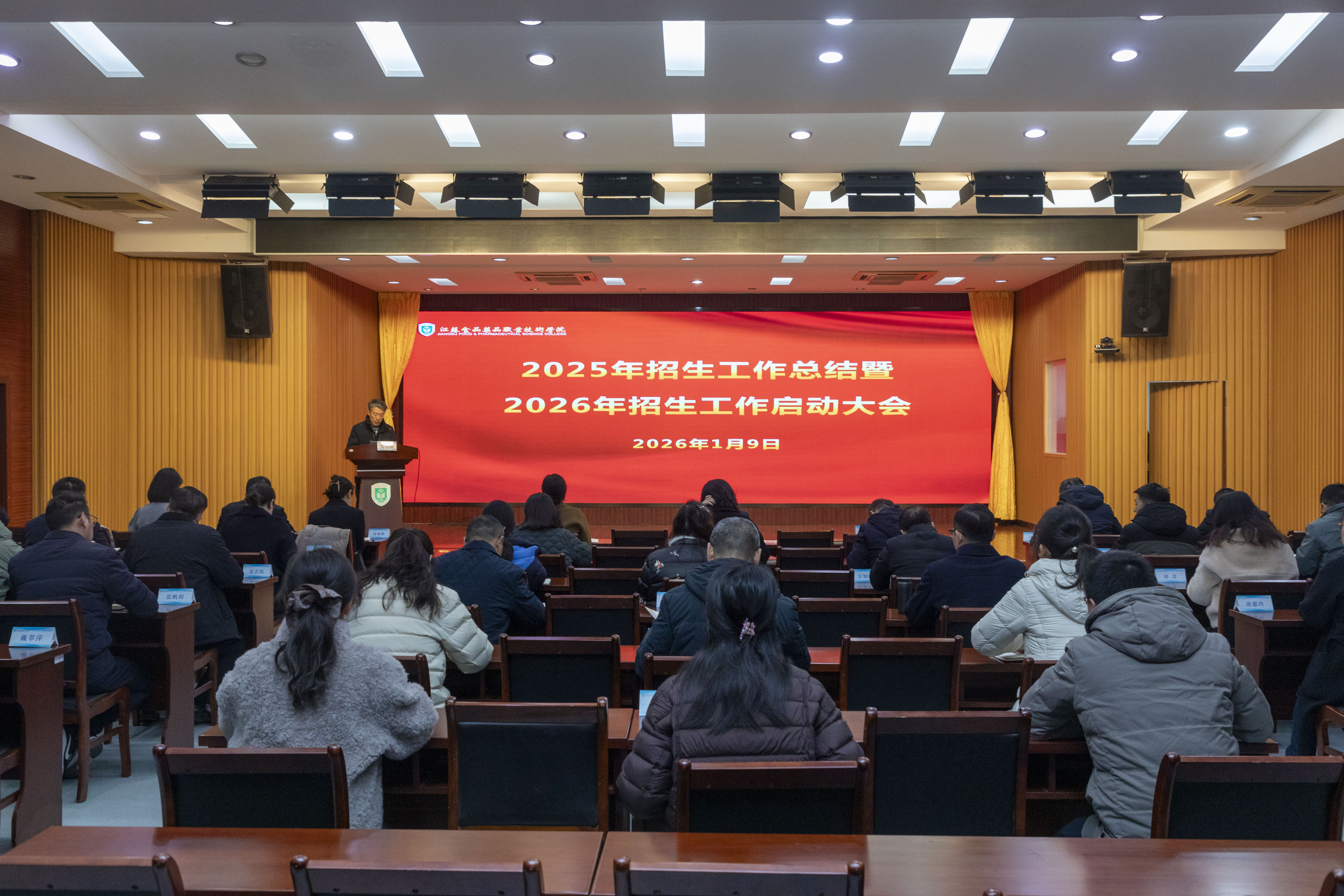 为全面总结学校2025年招生工作,科学谋划与部署2026年招生任务,1月9日,学校在第四会议室召开“2025年招生总结暨2026年招生启动大会”。校长安进、纪委书记夏燕萍、副校长贾韶千出席会议。会议由副校长贾韶千主持。